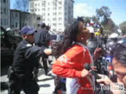 She was a torchbearer. She is an American. She is black. These cops hate America. They siezed her flag, confiscating her property without a warrant. It was her property. She is outraged. So am I.