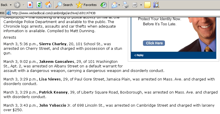 No mention on Boston Indymedia which is the one place I would expect to find news of such an arrest well documented...