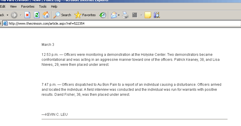 Honestly, WTF is going on here? It looks more and more like this incident never happened, and if so it means that either or both the HUPD and Harvard Crimson are making it up... very strange. The Crimson doesn't surprise me, but HUPD I took to be fairly professional...