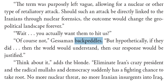 that the author begins the novel from the neo-con perspective,